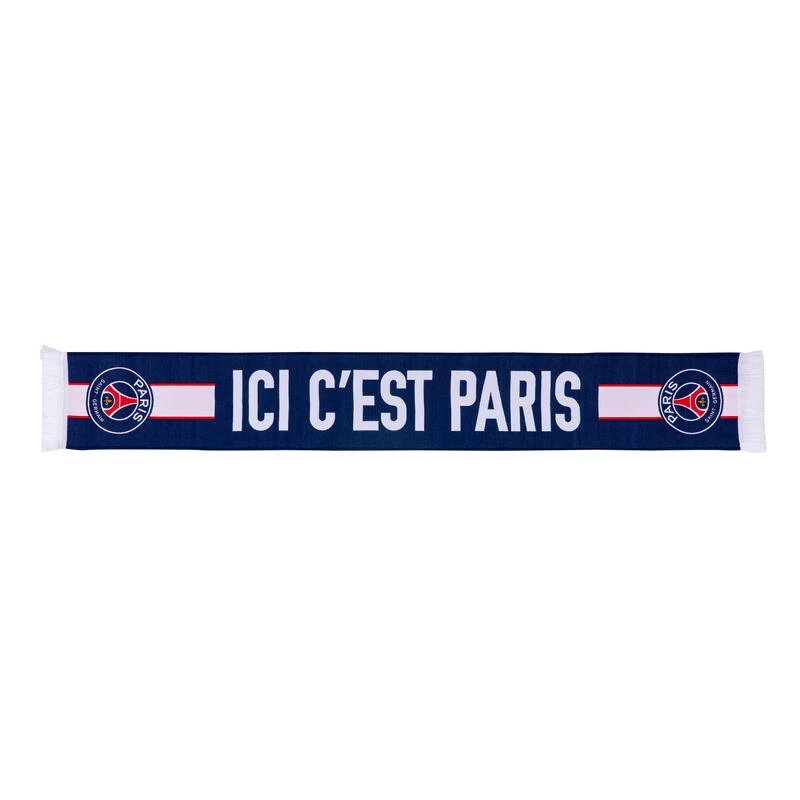 Psg supporterssjaal – Afgewerkt met franjes – “ICI C’EST PARIS” opschrift – Wapen van de Parijse club – Hechter streep – Samenstelling100% HD Acryl